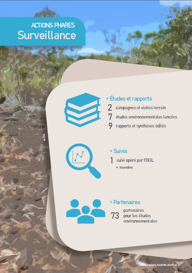 L’OEIL a maintenu ses priorités d'action dans le domaine de la surveillance environnementale de la zone d'influence de Vale NC et sur la commune de Thio, tout en poursuivant le suivi des principales pressions (incendies, érosion) sur des emprises plus larges (Nouvelle-Calédonie, province Sud).