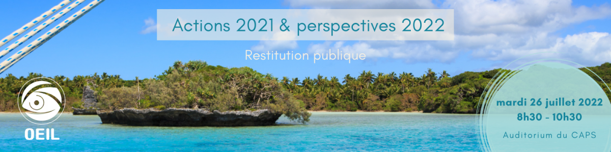 L'OEIL a tenu sa restitution publique "Bilan des activités 2021 & Perspectives 2022" le 26 juillet 2022 à l'auditorium de la province Sud. La présentation faite par l'équipe technique est désormais disponible.