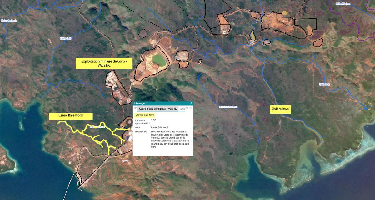 1. Le creek de la Baie Nord, situé en aval du bassin-versant abritant l’exploitation minière et industrielle de Vale NC a subi deux épisodes accidentels aigus de pollution par déversement d’effluents acides en avril 2009 puis en mai 2014.