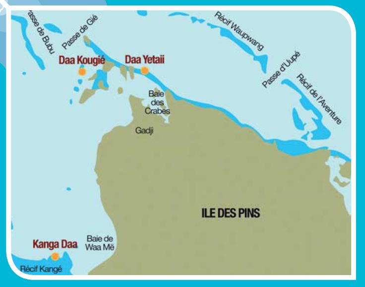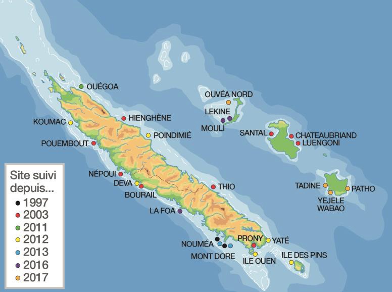 Le projet ACROPORA a permis l’installation et le suivi de neuf stations, réparties sur les trois communes du Grand Sud : Yaté, île Ouen au Mont-Dore, et île des Pins.