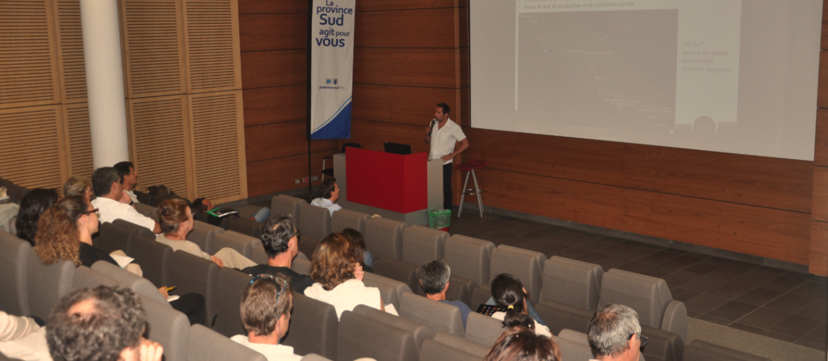 Une cinquantaine de personnes était réunie le mercredi 9 août 2017 pour connaître et échanger sur les conclusions de 3 études utilisant des techniques innovantes de télédétection : le projet DYNAMIC (étude OEIL en partenariat avec l’IAC, l’IRD et le Cirad) sur la dynamique de fragmentation des noyaux forestiers du Grand Sud, l'étude de production de données sur le mode d'occupation des sols en province Sud (étude OEIL par SIRS - Aqua Terra en collaboration avec le Gouvernement (DTSI, SAP), l’IAC, l’IRD, la province Sud (DDR, DENV, DFA, DSI) et le SIGN) et la caractérisation du bassin-versant de la Ouinné (étude de l’OEIL par Bluecham).