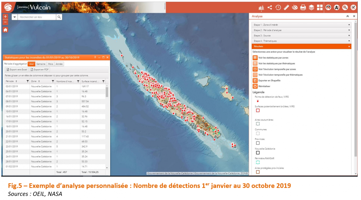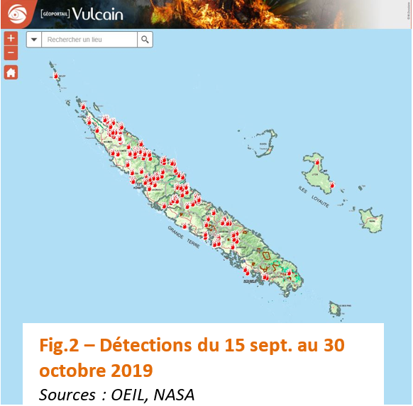 Le suivi par satellite opéré par l’OEIL fait état de 457 incendies détectés en date du 30 octobre pour l’année 2019, pour une surface d’environ 11 000 hectares brûlés (fig.1). A la même date l’année dernière, on en était à 139 événements, qui s’étaient étendus sur un peu plus de 3 000 hectares.