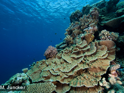 Les récifs coralliens sont constitués de multiples colonies coralliennes. Celles-ci sont le résultat d’une association entre une algue et un animal microscopique, le polype. Le squelette calcaire de ces colonies forme des constructions : les récifs coralliens. On trouve des récifs coralliens dans toutes les mers tropicales. En Nouvelle-Calédonie, il s’agit d’environ 4 500 km² de récifs, dont il est souvent admis qu’ils sont en bon état de conservation. |