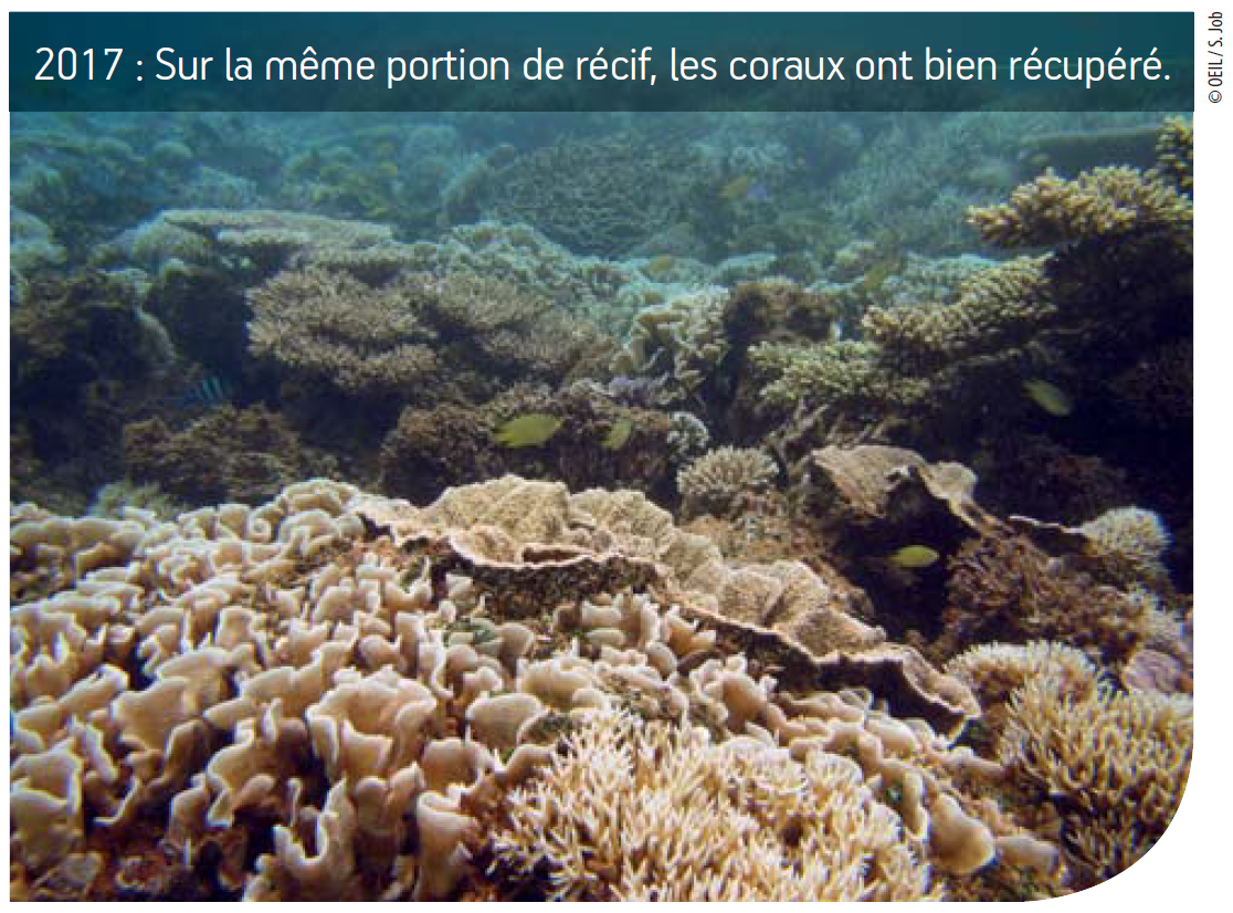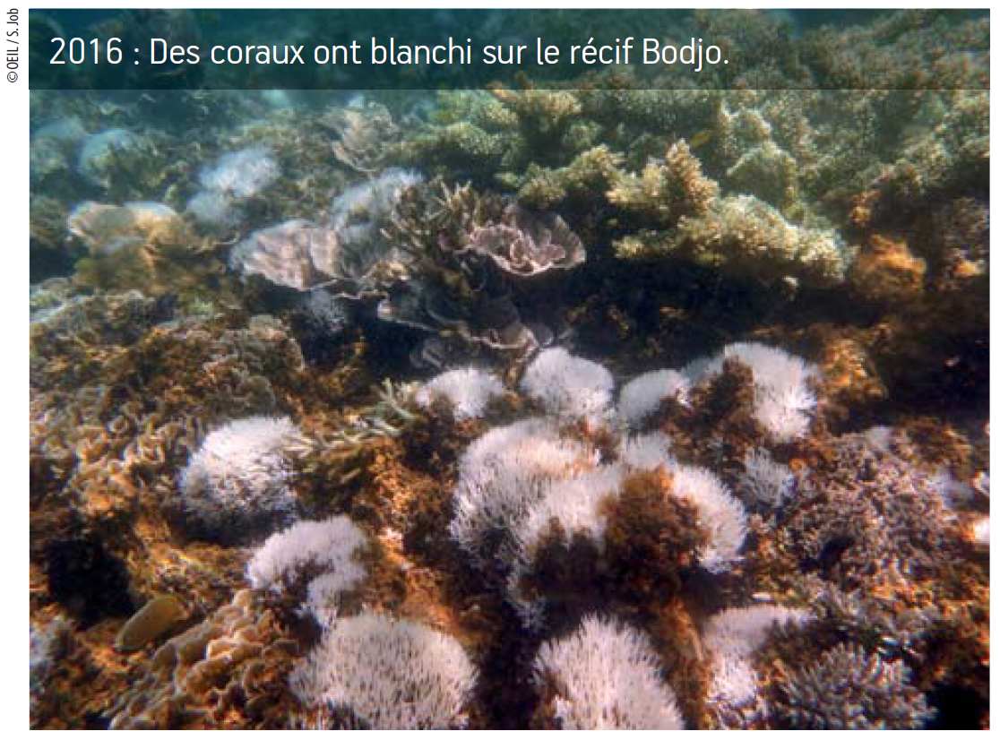 À l’île Ouen, le récif de Bodjo a connu un blanchissement sévère mais il n’a pas entraîné de mortalité justifiant un déclassement de l’état du site.