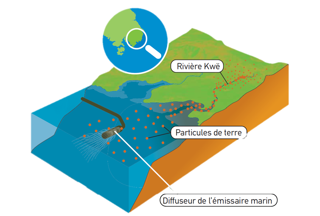 Par rapport au dernier bilan, une augmentation de la concentration de métaux a été mesurée lors des suivis 2015 dans les particules en suspension autour du diffuseur de l’émissaire marin (le nickel, le fer et le chrome notamment). Cette perturbation serait liée aux apports d’eau douce qui surviennent en baie Kwë. La rivière Kwë pourrait avoir déversé dans le lagon plus de particules de terre naturellement chargées en métaux. Sous l’action combinée des courants et du vent, ces éléments métalliques ont probablement été transportés jusqu’à la zone de rejet de l’émissaire.