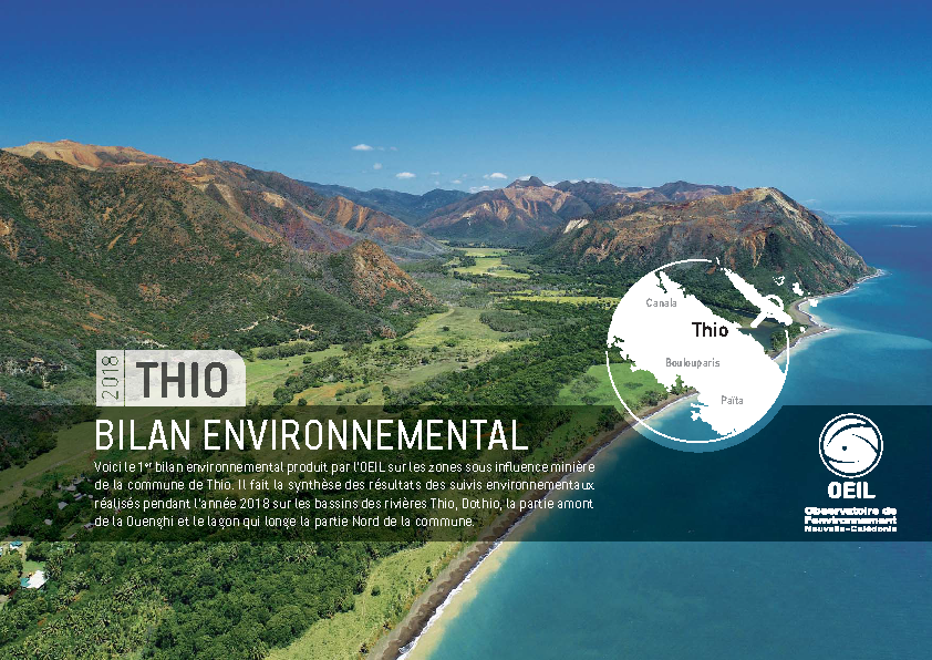 Ce bilan fait la synthèse des résultats des suivis environnementaux existants sur les bassins-versants des rivières Thio, Dothio, la partie amont de la Ouenghi, et le lagon qui longe la partie Nord de la commune. Les données utilisées sont issues des suivis environnementaux règlementaires opérés en 2018 par la SLN, la Société des Mines de la Tontouta (SMT), la DAVAR, la DASS, ainsi que des suivis volontaires de la mairie de Thio et de l'association Pala Dalik dans le cadre du Réseau d'Observation des Récifs Coralliens de Nouvelle-Calédonie (RORC).