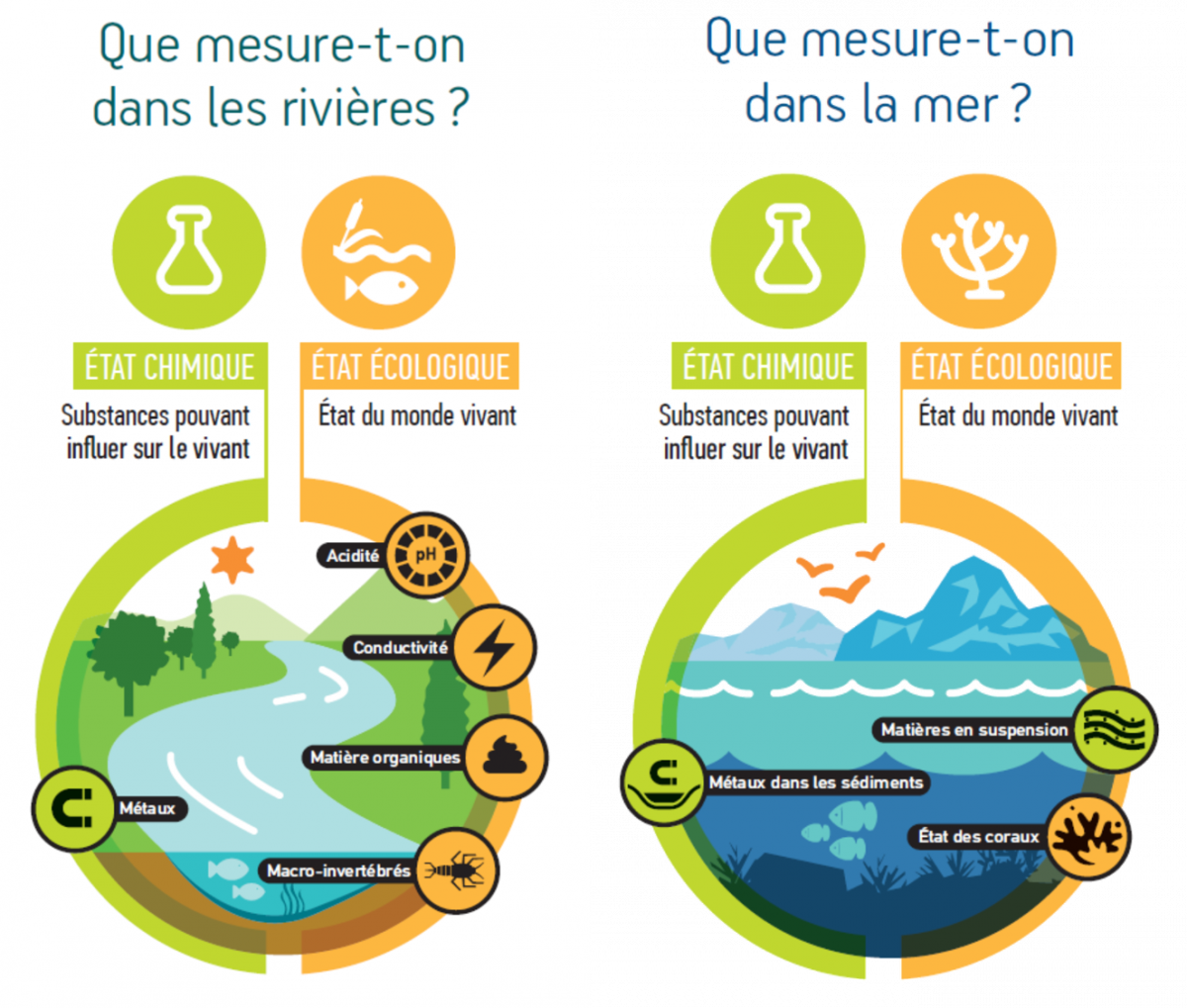 • Le suivi environnemental est très récent et de faible fréquence : il n'est donc pas encore possible d'évaluer l'état chimique des rivières, ni leur évolution.