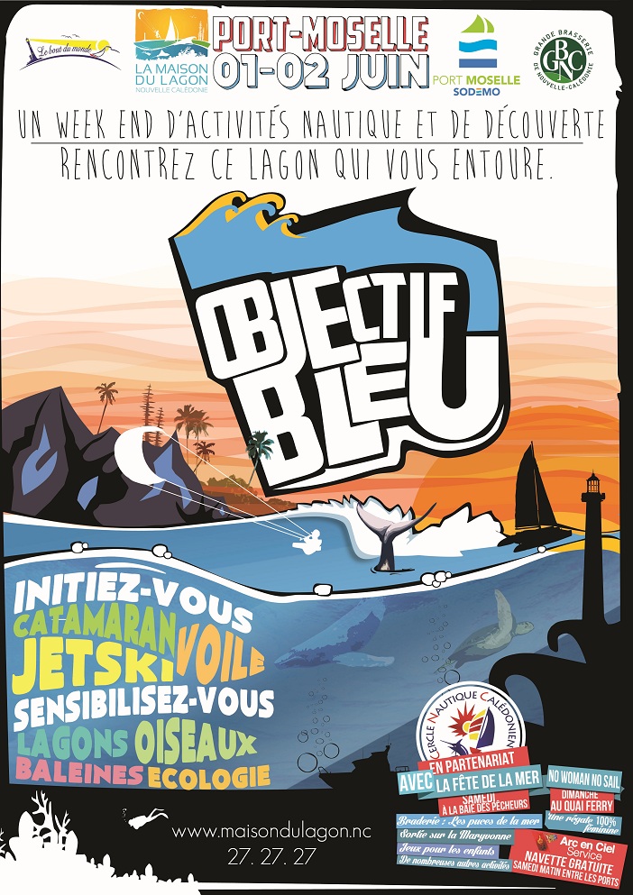 La Maison du Lagon organise l'événement OBJECTIF BLEU, un week-end découverte du lagon. Au programme: jeux pour enfants, initiations aux activités nautiques, rencontres avec les associations environnementales et de nombreux lots à gagner.