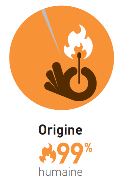 Les incendies sont des feux non maîtrisés. C’est à proximité des routes et des bâtiments qu'ils se déclarent le plus, initialement allumés comme pratique agricole (écobuage), comme technique de débroussaillage et de lutte contre les espèces envahissantes, comme technique de chasse, lors de conflits, par malveillance, ou simplement par irresponsabilité (ex. : mégots de cigarettes), etc.